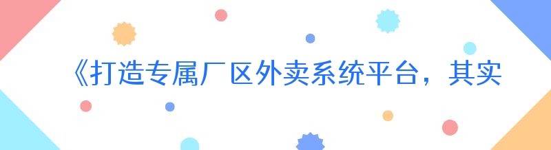 《打造专属厂区外卖系统平台,其实一点都不难!》