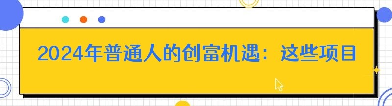 2024年普通人的创富机遇:这些项目助你轻松月入过万