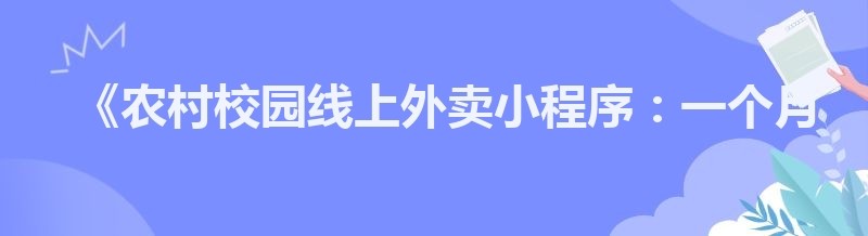 《农村校园线上外卖小程序:一个月回本的财富密码》