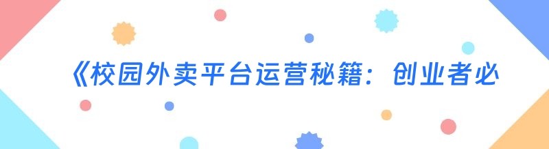 在大学校园这个充满活力与商机的市场中,校园外卖平台正逐渐成为创业者们关注的焦点。然而,要想在竞争激烈的校园外卖市场中脱颖而出,并非易事。以下是一些创业者必须知道的校园外卖平台运营要点。