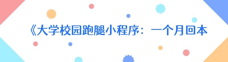 《大学校园跑腿小程序:一个月回本的神奇魅力与火热背后》