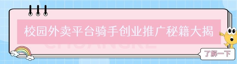 在校园这片充满活力与商机的天地里,外卖市场的火爆程度有目共睹。对于骑手来说,创业做校园外卖平台,如何进行有效的推广是取得成功的关键。今天,就来为大家揭开那些隐藏的推广技巧。