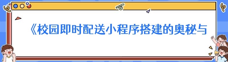 在校园这个充满活力与需求的场景中,即时配送小程序的搭建正逐渐成为一种趋势。它不仅能够满足学生们日益增长的便捷生活需求,还为校园商业生态的发展提供了新的机遇。那么,校园即时配送小程序搭建究竟有哪些关键要点呢?