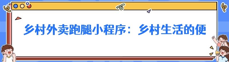乡村外卖跑腿小程序:乡村生活的便捷新选择