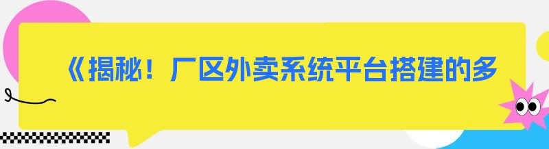 《揭秘!厂区外卖系统平台搭建的多元方式,你知道几种?》