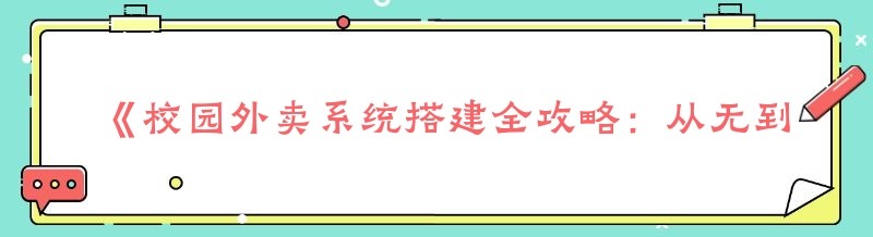 《校园外卖系统搭建全攻略:从无到有的创业之路》