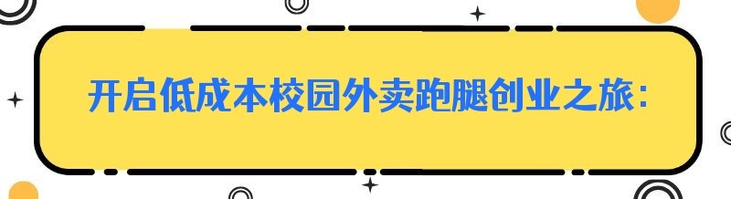 开启低成本校园外卖跑腿创业之旅:探索校园外卖系统项目