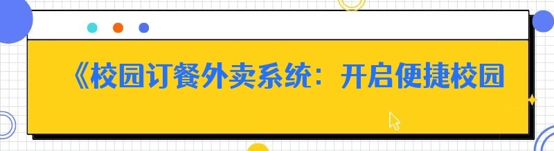 - 《校园外卖配送搭建指南:开启便捷校园生活新篇章》