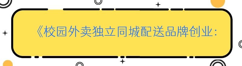 《校园外卖独立同城配送品牌创业:第一步的关键与正确路径》