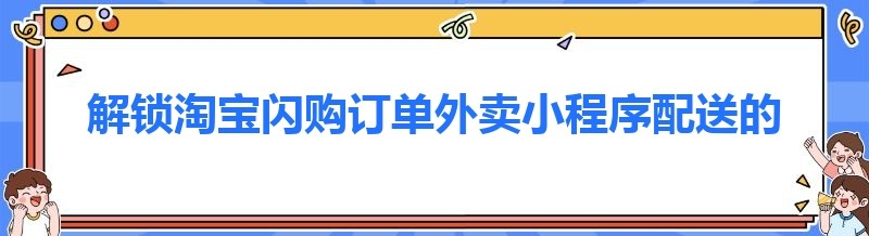 解锁淘宝闪购订单外卖小程序配送的神秘面纱