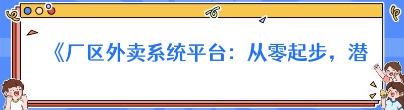 《厂区外卖系统平台:从零起步,潜力无限》