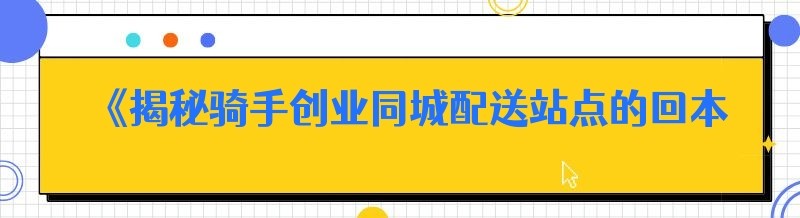 《揭秘骑手创业同城配送站点的回本秘籍与详细流程》