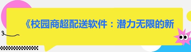 《校园商超配送软件:潜力无限的新机遇》