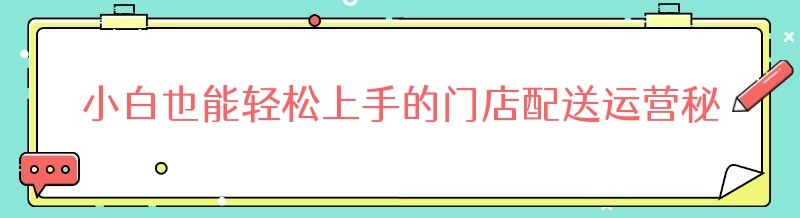 小白也能轻松上手的门店配送运营秘籍