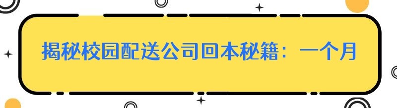 揭秘校园配送公司回本秘籍:一个月实现盈利的关键要素