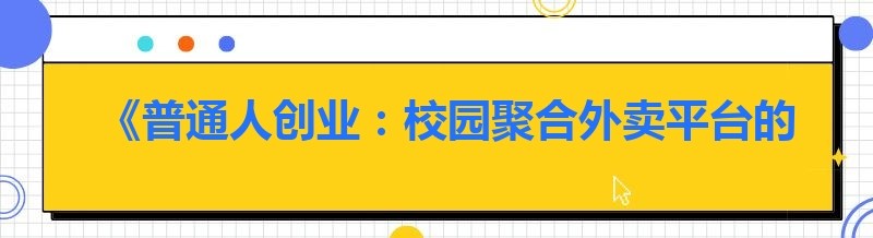 《普通人创业:校园聚合外卖平台的成功密码轻松掌握》