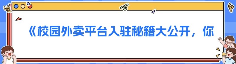 《校园外卖平台入驻秘籍大公开,你还在等什么?》