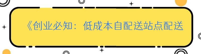 《创业必知:低成本自配送站点配送系统的选择秘籍》