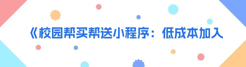 《校园帮买帮送小程序:低成本加入攻略大揭秘》