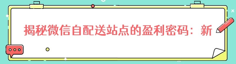 揭秘微信自配送站点的盈利密码:新手必知要点大汇总