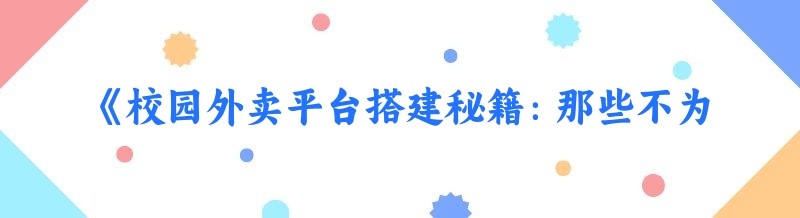 《校园外卖平台搭建秘籍:那些不为人知的隐藏技巧》