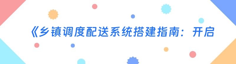 《乡镇调度配送系统搭建指南:开启便捷物流新时代》