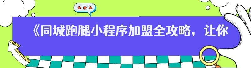 《同城跑腿小程序加盟全攻略,让你轻松开启创业之旅》