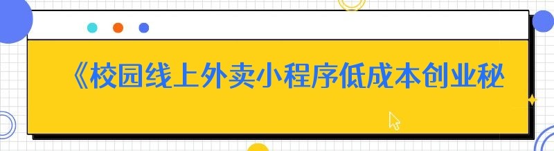 《校园线上外卖小程序低成本创业秘籍大公开》