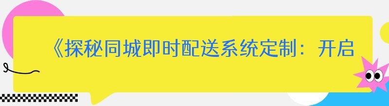 《探秘同城即时配送系统定制:开启高效物流新时代》