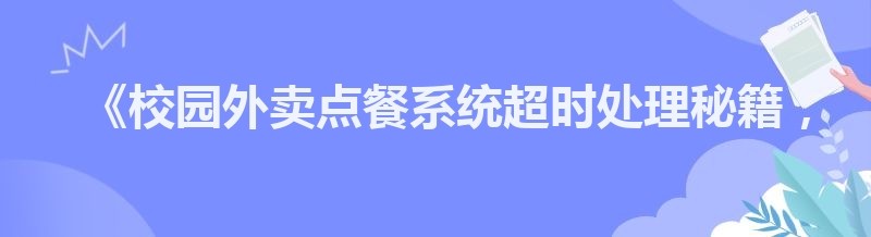 《校园外卖点餐系统超时处理秘籍,你必须知道!》