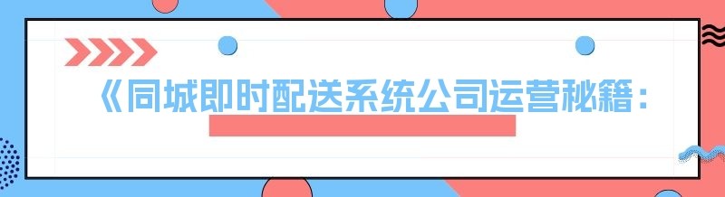 《同城即时配送系统公司运营秘籍:低成本创业之路》