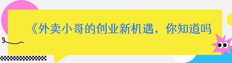 《外卖小哥的创业新机遇,你知道吗?》