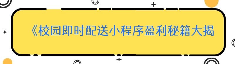 《校园即时配送小程序盈利秘籍大揭秘》