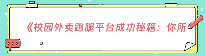 《校园外卖跑腿平台成功秘籍:你所不知道的关键要点》