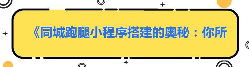 《同城跑腿小程序搭建的奥秘:你所不知道的隐藏技巧》