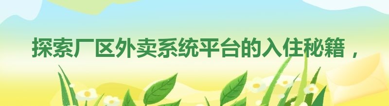 探索厂区外卖系统平台的入住秘籍,你还在等什么?