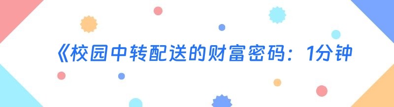 《校园中转配送的财富密码:1分钟轻松解锁》