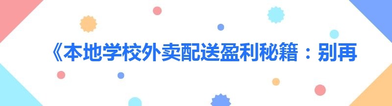 《本地学校外卖配送盈利秘籍:别再走错第一步》