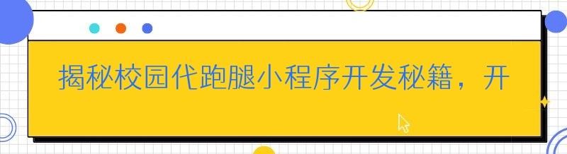 揭秘校园代跑腿小程序开发秘籍,开启便捷校园生活新时代