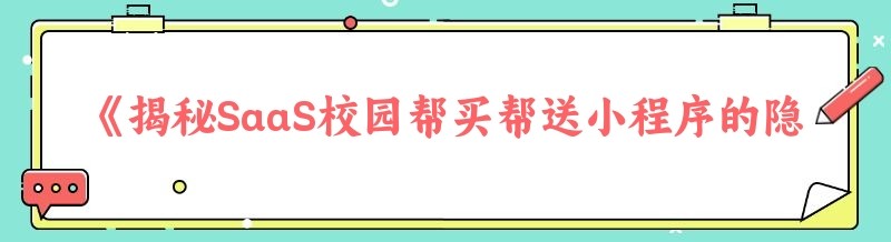 《揭秘SaaS校园帮买帮送小程序的隐藏秘籍》