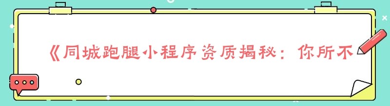 《同城跑腿小程序资质揭秘:你所不知道的那些事儿》