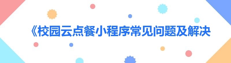 《校园云点餐小程序常见问题及解决秘籍》