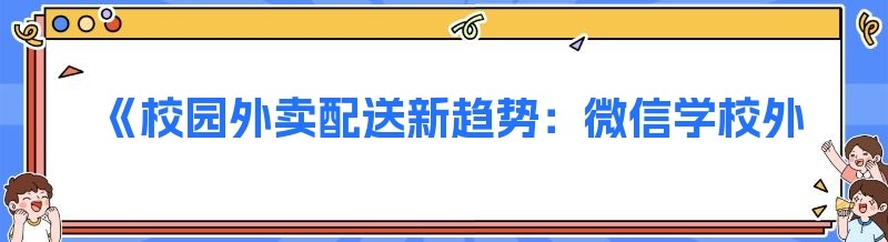 编辑 《校园外卖配送新趋势:微信学校外卖配送的建立秘籍》