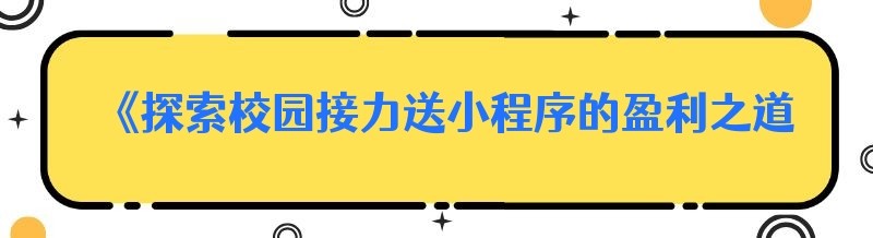 《探索校园接力送小程序的盈利之道与开发秘籍》