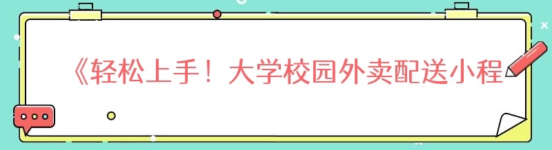 《轻松上手!大学校园外卖配送小程序全攻略》