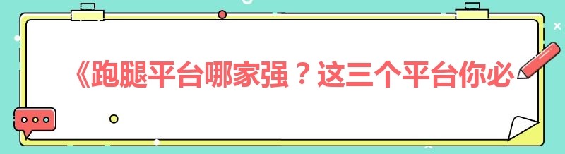 《跑腿平台哪家强?这三个平台你必须知道!》