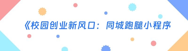 《校园创业新风口:同城跑腿小程序的大学攻略》