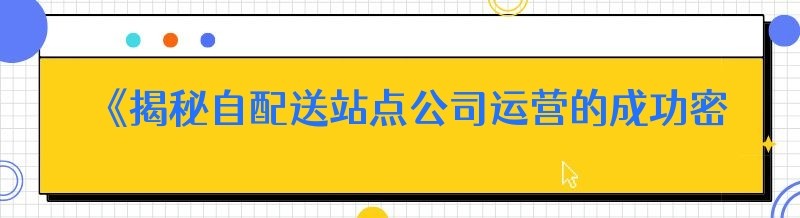 在如今竞争激烈的外卖市场中,自配送站点公司的运营成为了决定其成败的关键因素。那么,如何才能让自配送站点公司高效、稳定地运营呢?本文将为您分享一些宝藏干货,助您一臂之力。