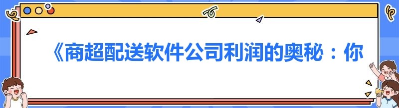 《商超配送软件公司利润的奥秘:你不可不知的关键》