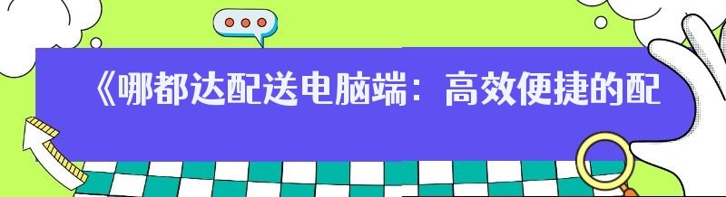 《哪都达配送电脑端:高效便捷的配送管理利器》